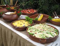 The food served is depends on the taste of the host couple: an entry, appetizers, an entree with chicken beef or other type of food accompanied with salad, wine, water and dessert.